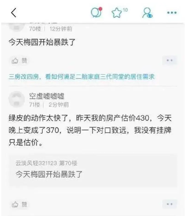 微博上一位认证上海泽乐地产的顾问也表示,该学区房以前价格疯涨一房难求,目前逆转了。大量房源正在上架中……