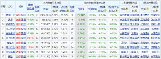 最后,看一下近三个交易日北向资金增持、减持行业板块的情况。据东方财富网数据,上周五,沪股通净卖额23.97亿元,深股通净卖额16.34亿元,两市合计净卖额40.32亿元。