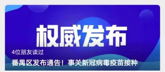 近日,番禺发布关于开展新冠病毒疫苗大规模人群接种工作的通告。