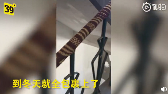 大连泡崖八区玉丽街39号楼,从一楼到七楼的楼梯把手都“穿着毛衣”,“织毛衣”的主人公是一位83岁的老人。老人称此举是希望邻居们上下楼把扶手时不会感到凉。采访中记者了解到老人心灵手巧,年轻时家人孩子的毛衣毛裤、外衣都是自己来做,老了仍然喜欢就地取材做些手工。