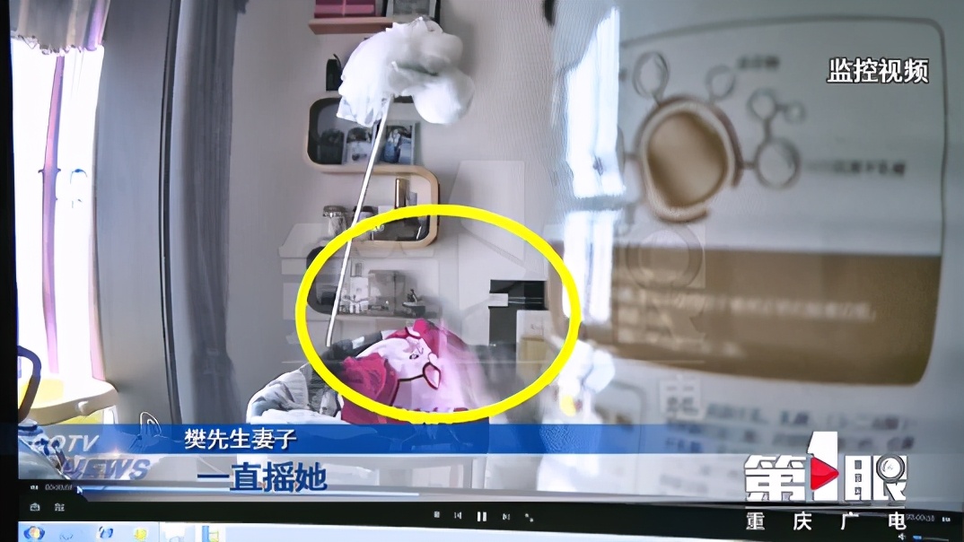 视频中,大声哭闹的婴儿就是樊先生出生才四十天的女儿。这个阿姨是樊先生家聘请的保姆王大姐。每个月五千元,王大姐五十多岁,来自铜梁,算是熟人,是樊先生妻子一位前同事的母亲,经验非常丰富。