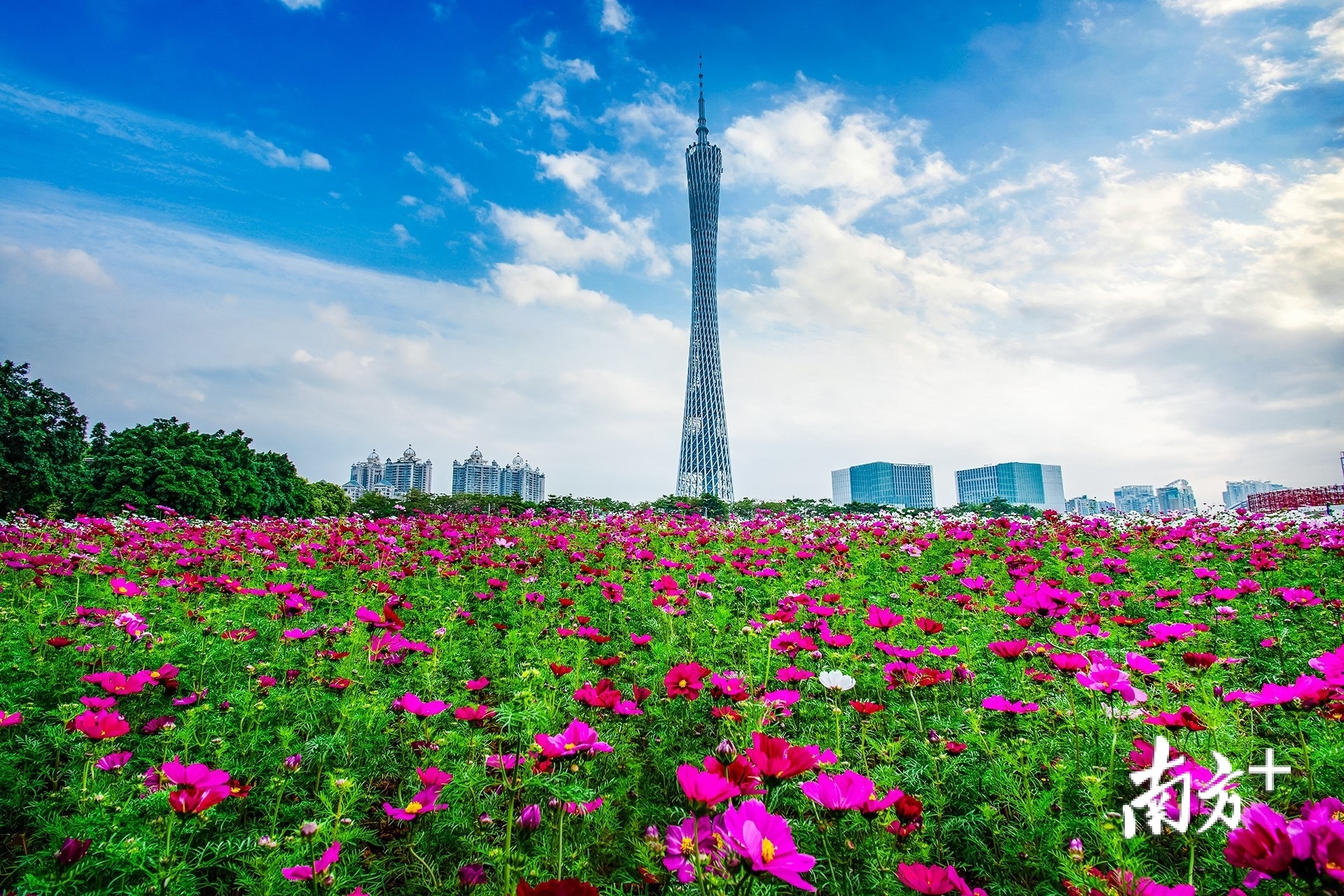3月18日,广州海心沙公园里的格桑花海非常艳丽。7c拍影 摄