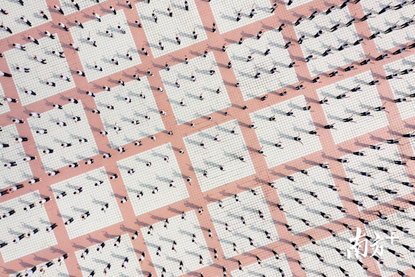 3月17日,晨光中,阳江市第二中学的学生在做课间操。刘正亮 摄