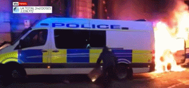 英国天空新闻网22日消息称,当地一个派出所遇袭,几名警员骨折,多辆警车被烧。事发时,市中心数百名抗议人员游行至新布莱德韦尔警察局后,原本的和平示威活动开始激化。警察局的窗户被打碎,附近一辆警车被涂上标语,之后被点燃。