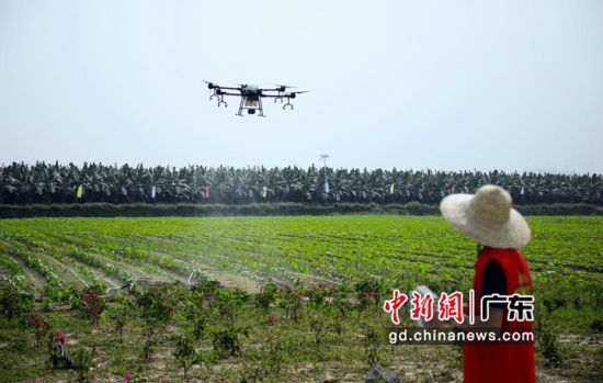 幸福田园工作人员操控无人机为农作物洒水施肥。增城区融媒体中心 供图