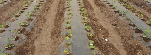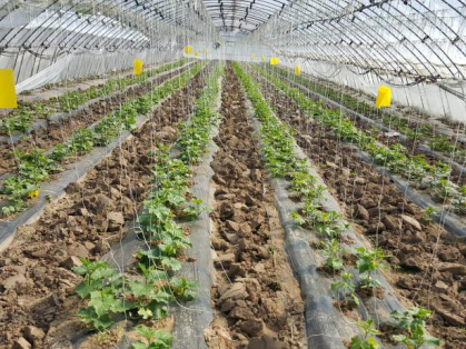 造墒提温:棚室消毒后充分散味,铺设滴灌、覆盖地膜(优先选用银灰色地膜、可生物降解地膜),并灌溉造墒,亩用水量6-8m3,灌溉后封棚提温。
