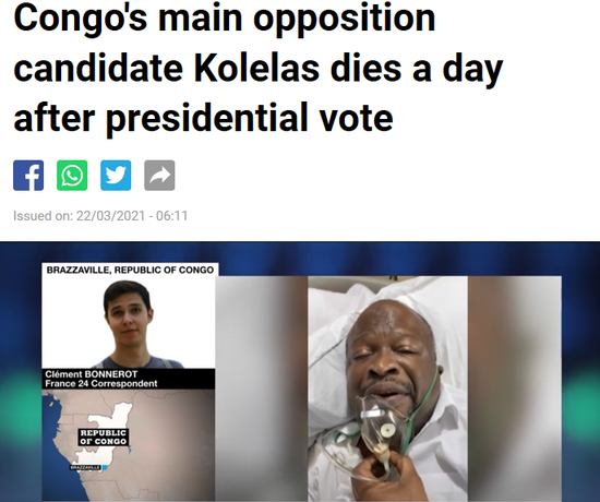 星岛环球网消息:海外网3月22日电 法新社22日报道称,刚果(布)21日举行总统选举,全国约250万注册选民当日投票选出新一届总统。同一天,刚果(布)主要反对派候选人科莱拉斯因新冠肺炎病情加重,在送往法国治疗途中死亡。