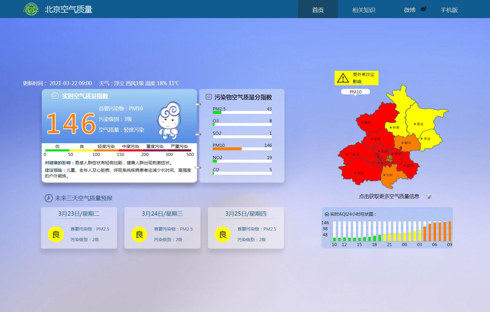 中新网客户端3月22日电 22日,北京市出现沙尘天气。据北京市生态环境监测中心消息,21日白天,蒙古国南部沙源地出现了沙尘天气,扬起的沙尘在西北风的作用下自西北向东南传输,先后影响内蒙古中部、河北北部等地。22日03时,北京延庆、昌平等区开始受到沙尘传输的影响,PM10浓度升至3级轻度污染水平,目前沙尘已影响到北京大部分区域,空气质量以3-4级轻度-中度污染水平为主。