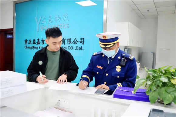 仓储物流企业消防安全检查现场 沙坪坝区消防救援支队供图 华龙网发