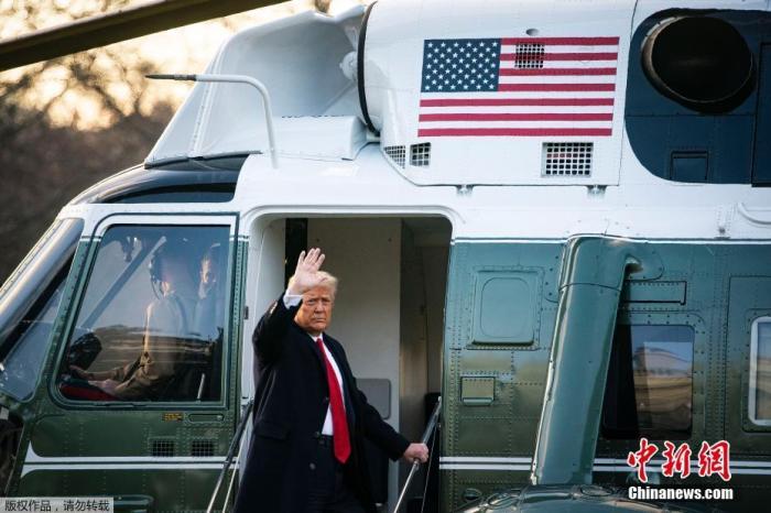 当地时间2021年1月20日,美国前总统特朗普登上“海军陆战队一号”总统专用直升机。