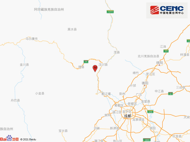 中国地震台网正式测定:03月22日23时32分在四川阿坝州汶川县(北纬31.38度,东经103.44度)发生2.9级地震,震源深度11千米。