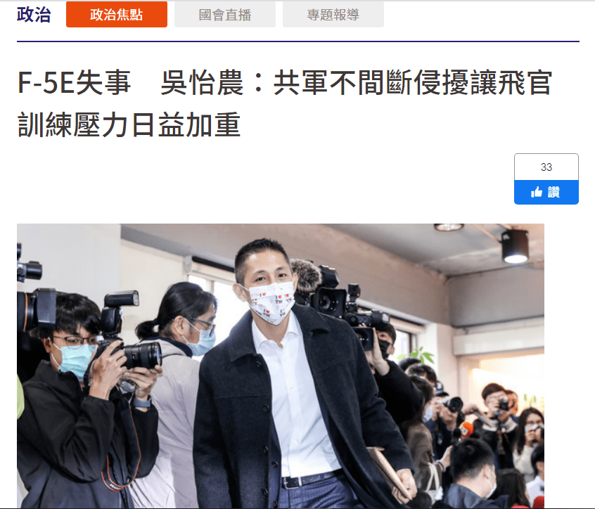 路透社这个说法,和岛内某些习惯向大陆“甩锅”的人不谋而合。民进党籍政客吴怡农也表示,本次事故的原因是大陆军机“不间断地侵扰,导致台军的战备和训练压力日益加重”。