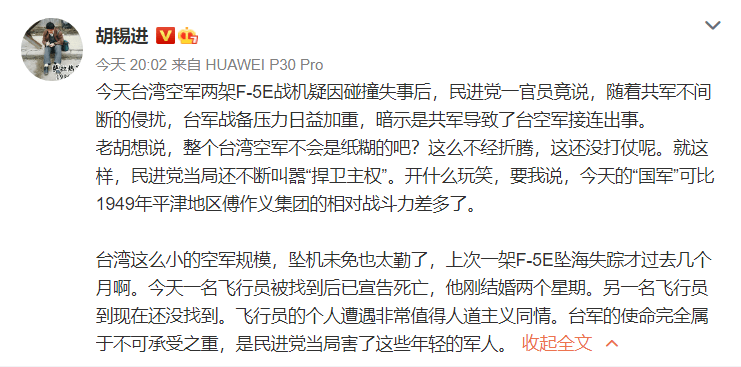 这篇报道的后文还称,台军“空军”训练有素、装备精良,配备了大量美式装备。可从目前披露的情况看,这八个字的评语,台军似乎一个都靠不上。