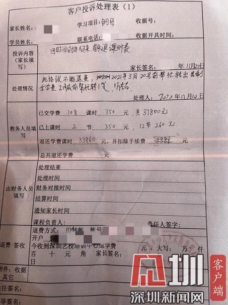 见圳客户端·深圳新闻网2021年3月23日讯 (记者 曹园芳)“2020年12月,在深圳市消费者委员会工作人员的陪同下,我和艺术+少儿艺术教育机构签署了《客户投诉处理表》,对方承诺2021年3月20日前转出剩余课时费33860元,2月底前先转出1万元左右,但至今未曾收到一分钱。”雷女士向深圳新闻网记者说到。