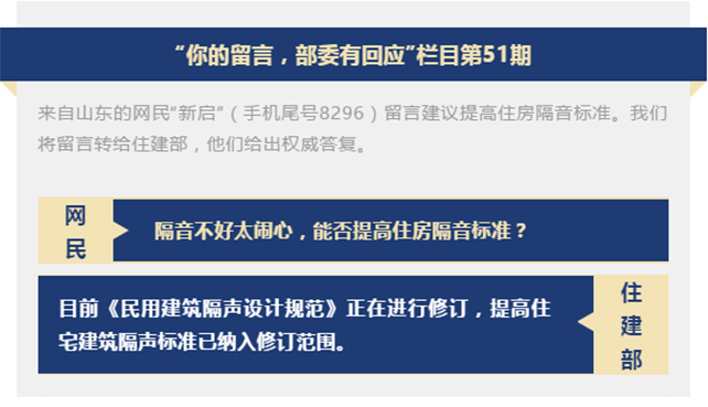 据中国政府网3月22日消息,住房城乡建设部答复了山东一位网民关于“建议提高住房隔音标准”的留言。