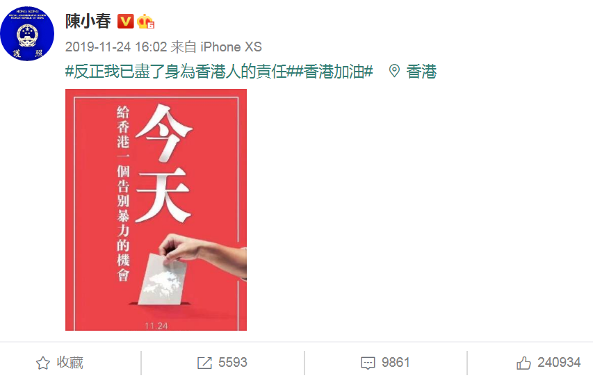 其实,陈小春此前多次表达爱国之情,为香港加油。