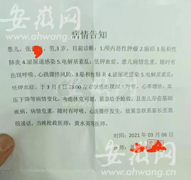3月22日上午10点,新安晚报、安徽网、大皖新闻记者联系到张先生了解到,他在亚技精密元件(苏州)有限公司就职,已经在该公司工作了十三年。他的儿子今年三岁多,去年八月份在宿州市立医院检查时被诊断患有脑干胶质瘤,“大半个中国都跑遍了,但这个病依然难以治愈。”