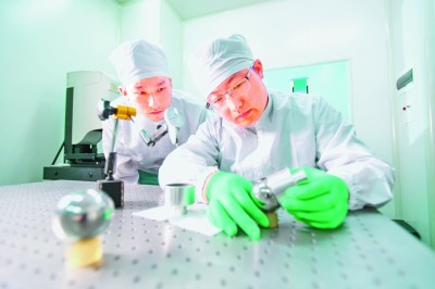 引力波探测“天琴计划”研究人员在华中科技大学引力实验中心磨制用于精密测量引力的钢球。新华社发