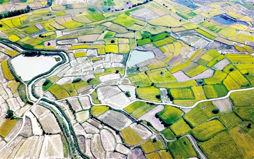 安徽省滁州市凤阳县小岗村的田野景象(2018年9月27日摄,无人机照片)。 新华社记者 张 端摄