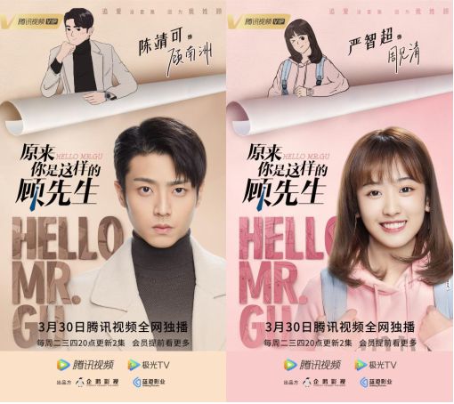 由企鹅影视出品,蓝港影业承制,新锐导演马洪文、李典执导,新生代演员陈靖可、严智超、郭耘奇、朱丹妮、丁嘉文、辛瑞琪、钟伟伦等联袂主演的青春爱情偶像剧《原来你是这样的顾先生》今天发布主视觉海报、单人海报,以及先导预告片,并正式宣布将于3月30日在腾讯视频独家播出。