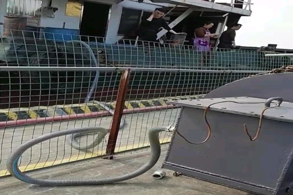 图为岸基生活污水接收装置正在运作。
