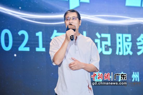 斗记普洱茶创始人陈海标在大会上发言。通讯员 供图