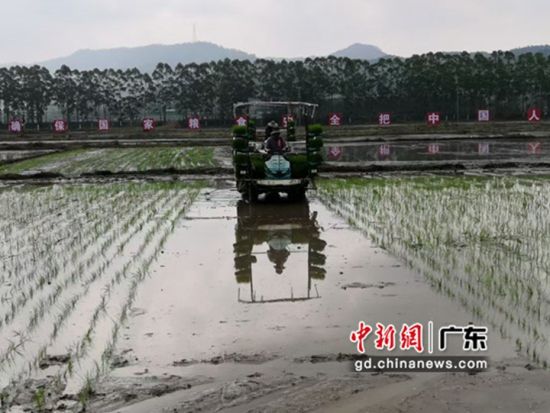 近日,江西省新余市渝水区姚圩镇新宋村上千亩的水稻田中,当地农村合作社的创办人彭鹏正操作着插秧机在田里进行插秧。