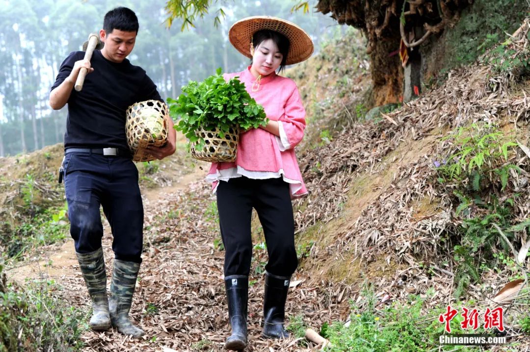 柯嘉华和周晰夫妻俩到山上挖笋。中新社记者 张金川 摄