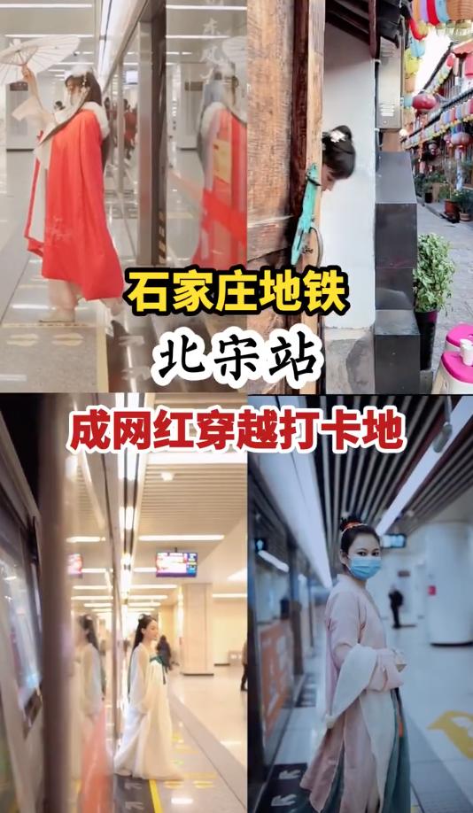 最近,河北石家庄地铁北宋站火了。因“北宋”站与朝代“北宋”同名不少人穿着古装前来打卡玩“穿越”。