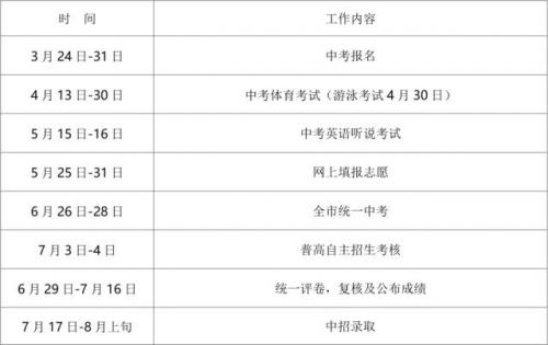 提前批:普通高中自主招生、深圳艺术学校、深圳体育运动学校。