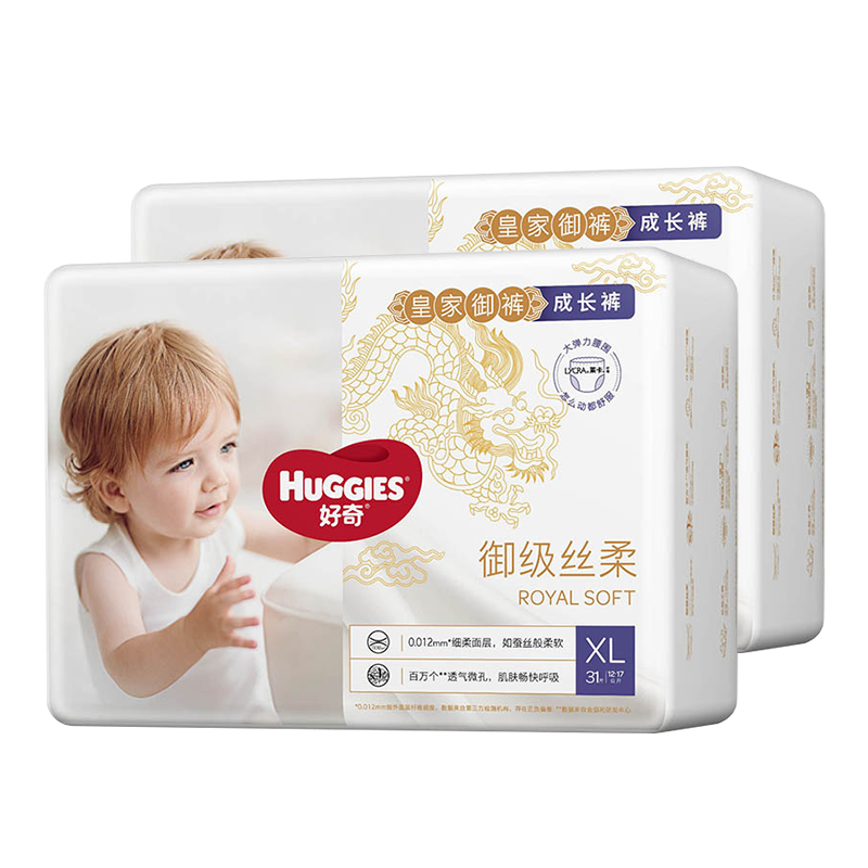 当天性活泼好动的宝贝解锁了爬行技能后,与宝宝皮肤亲密接触的贴身成长裤,一定要选择柔软亲肤的,好奇皇家铂金装拉拉裤御丝龙纹裤必须Get!这款新晋断货王选用0.012mm细柔面层,细腻如蚕丝一般;特有0.2cm裸感芯,薄到透光超透气,让屁屁时刻干爽;最特别的是首创的皇家龙凤纹,典雅印花夺人眼球~