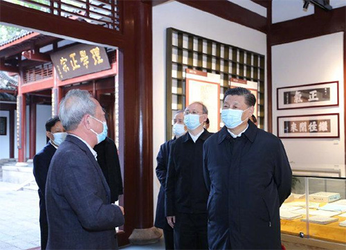 3月22日,正在福建武夷山市考察的习近平总书记来到朱熹园,了解朱熹生平及理学研究等情况。总书记强调,我们要特别重视挖掘中华五千年文明中的精华,弘扬优秀传统文化,把其中的精华同马克思主义立场观点方法结合起来,坚定不移走中国特色社会主义道路。