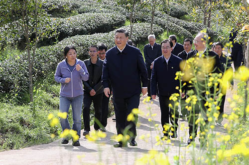 3月22日下午,正在福建考察调研的习近平总书记来到武夷山市星村镇燕子窠生态茶园,察看春茶长势,了解当地茶产业发展情况。总书记指出:“要把茶文化、茶产业、茶科技统筹起来,过去茶产业是你们这里脱贫攻坚的支柱产业,今后要成为乡村振兴的支柱产业。”