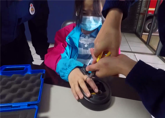 原来,小女孩玩耍戒指,因手指肿胀取不下来。老师急忙寻求校医帮助,试图用肥皂水、食用油润滑手指将戒指取出,但无济于事。情急之下,前往消防站求助。