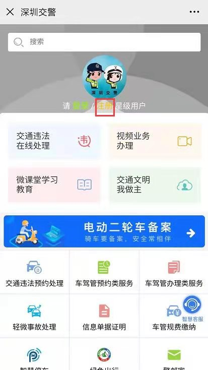 通过深圳交警微信公众号进入星级用户平台,选择注册,阅读用户须知点击“确认”按钮,阅读其他人员注册须知后点击“确认”按钮,点击“其他人员注册入口”按钮,依据人员类型,输入个人信息并上传相关证件。属于现役军人(含武警)类的,需先选择证件类型(如有身份证,请按照“一键注册”流程进行注册),再填写相关信息。
