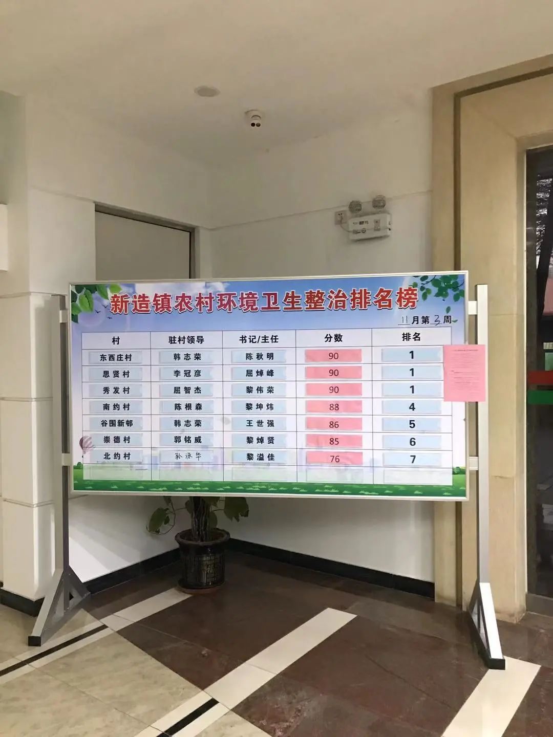 二是完善制度建设,创新治理模式。以农村日常环境卫生整治的长期性、复杂性和反弹性这三方面为问题突破点,制定《新造镇农村环境卫生整治考核工作方案》,明确“制定考核办法、加强巡查频次、及时发现问题、交办督促整改、收集反馈分析和公示考核结果”六步工作流程,成立4个包干检查小组,每周一、周三到各条村及谷围新邨进行不低于45分钟的卫生巡查,把巡查发现问题宗数、整改完成率及每周五的集中清洁和灭蚊行动情况纳入农村环境整治考核排名,评比结果每周在镇政府大堂公布。充分调动各被考核单位抓实环境卫生工作的积极性,激励各单位争当上游。自2021年11月工作方案实施以来,全镇各被考核单位在区级考评中取得了明显进步,扭转了长期靠后的局面。