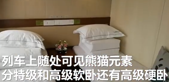 3月24日,四川成都,全国首列熊猫专列亮相成都。列车上,不仅有“熊猫悦府”特级软卧、“熊猫雅舍”高级软卧、“熊猫归阁”高级硬卧、更有机麻棋牌室和KTV可供旅客娱乐休闲。