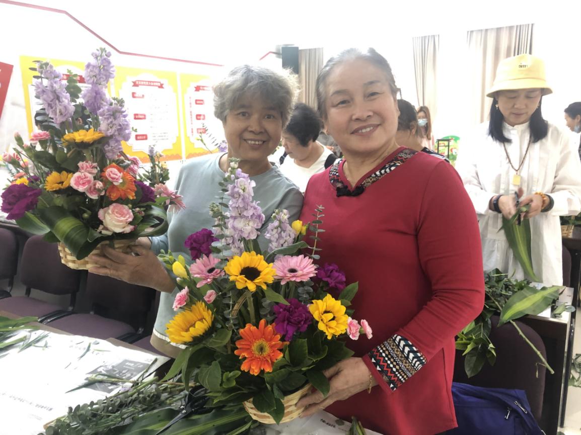 看着自己亲手创作的看着自己亲手创作的插花作品,大家纷纷洋溢着了欢乐的笑容。他们表示,这次的插花体验是一次全新的尝试,很有收获。不仅提高了自身的动手能力,增添了生活乐趣,在这里还认识了许多街坊,大家一起相互交流,其乐融融,体会到了来自社区的关爱和温暖。