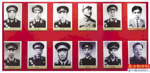 纪念馆内陈列的参加三河坝战役的领导人和将领。