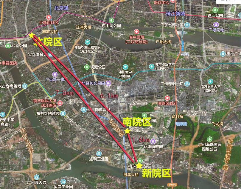 (中山大学孙逸仙纪念医院三个院区示意图)