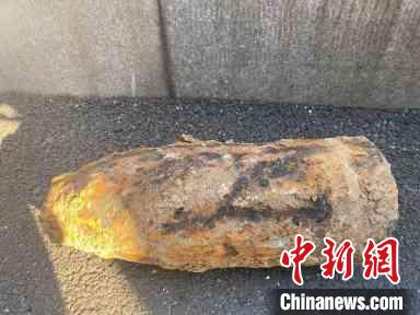 该枚废旧炮弹弹体完好,外部遍布锈迹。唐娟 摄