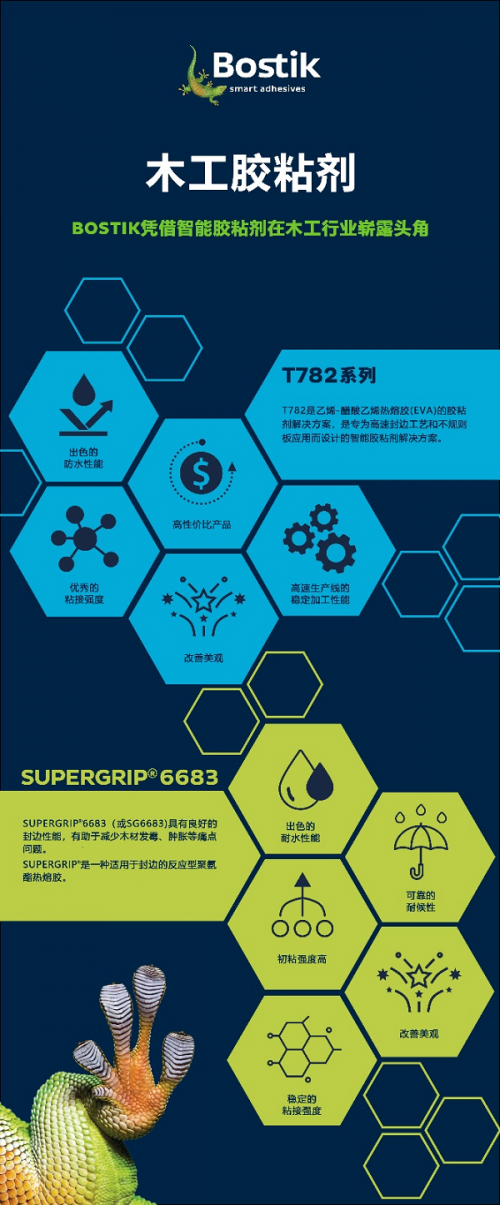 “在过去的一年里,全球对家具的需求不断增长,这意味着我们必须保持领先地位,以维持木工行业的增长,”董汉棒,亚太区建筑材料与木工业务总监表示。“Bostik提供最广泛的木工胶粘剂解决方案,并持续创造现代化产品系统和更多其他智能胶粘剂解决方案,如全新的T782产品系列和SUPERGRIP™ SG6683。”