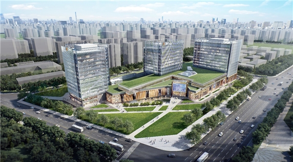 上德中心作为大兴国家新媒体产业基地的门户形象,通过立体化多层次的园林景观,使5A甲级写字楼与时尚多元的商业版块功能衔接,互动互联,互生共融,进而实现“在花园里办公,在森林中Shopping”的商办环境和谐统一,为大兴营造独特人文艺术环境的同时,致力于打造国际生态办公新地标。