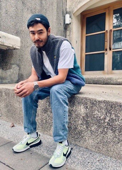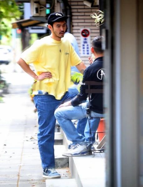 此前,阮经天被拍到现身宅邸附近一家咖啡馆旁,他身穿黄色T恤搭配上牛仔裤,并头戴帽子,装扮休闲,满脸胡茬的他正在和友人聊天,甚至直接坐在街边花圃旁抽烟,毫无偶像包袱。
