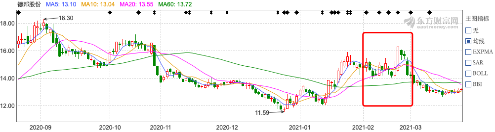 同样受益于证监会审核通过与韵达的“联姻”,德邦在1月底股价略有下跌的情况下在2月2日迎来增长,涨幅为2.64%,而在二月下旬,德邦股价连续大起大落,2月23日,德邦股价盘中涨停,股价最高达16.29元,3天后(2月26日)德邦股价急转直下,跌幅达9%,股价一度跌至14.2元,德邦也成为2月股价跌幅最大的公司。