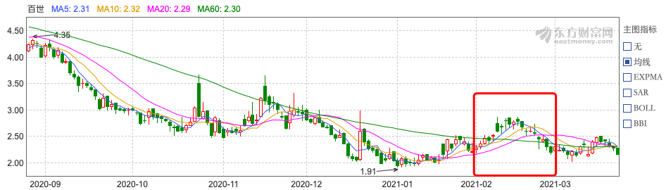 在经历1月20日盘前涨超30%、全月涨幅超8%后,走在转型道路上百世集团在2月整体股价波动不大,上半月小幅增长,随后又小幅度回调,截至2月26日收盘,百世股价2.19美元,较上月微跌0.9%。