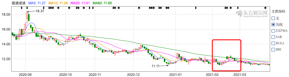 在过去一年连续遭遇股价下滑,并在今年1月股价连续突破历史最低值之后,申通股价在2月1日跌至8.77元的历史最低值后迎来触底反弹,2月,申通股价涨幅高达11.77%,为快递公司中涨幅最大的企业,而直接原因或来自于申通管理层的换届。