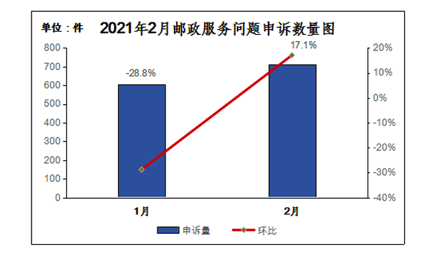 国家邮政局发布的2月邮政快递业用户申诉情况的通告(以下简称“通告”)显示,涉及快递服务问题的申诉18004件,占总申诉量的96.2%,环比下降14.5%,同比增长47.7%。
