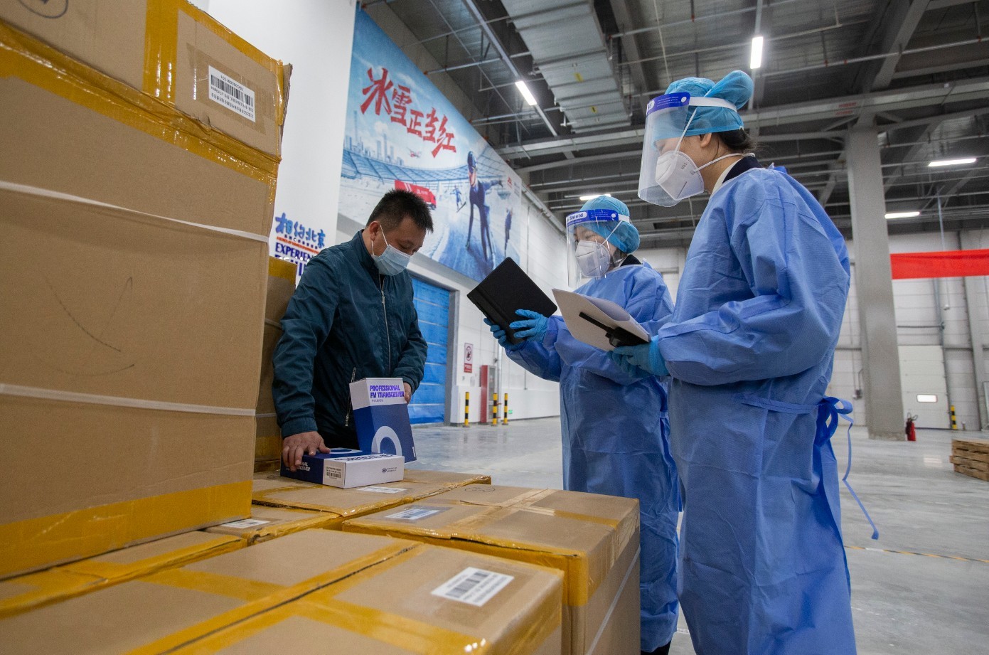 2021年3月25日,北京海关所属朝阳海关关员完成2022年北京冬奥会冬残奥会首批暂时进境物资通关手续。(摄影:畅瑞邦)