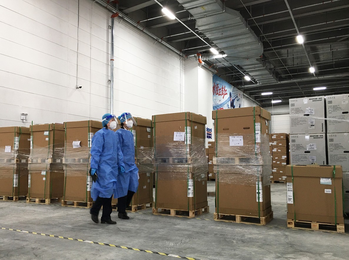 北京海关所属天竺海关关员在北京2022年冬奥会冬残奥会主物流中心监管。(摄影:王晓龙)